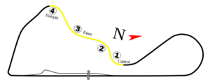 The longest and fasted drift course available at Ruapuna generally starts in 3rd gear and stays in 3rd gear as drivers work their way towards the difficult link up in the last two corners, may be run in reverse direction
